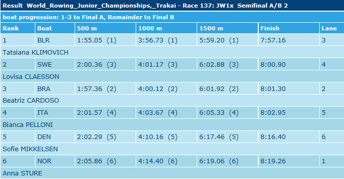 Aos 18 anos, a carioca Beatriz Tavares Cardoso escreveu seu nome na história do remo brasileiro este sábado, em Trakai, na Lituânia. Ela é a primeira remadora do país a disputar a Final A em um Campeonato Mundial Júnior, às 14h55 (8h55 de Brasília) deste domingo, 26 anos após a última participação nacional na disputa por medalhas na competição, com o Dois Com masculino, na Alemanha.