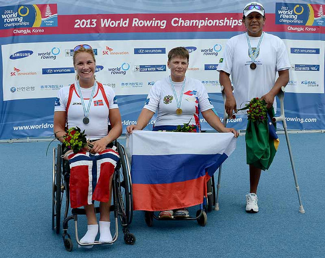 A paulista Cláudia Cícero Santos bronzeou a participação brasileira no Campeonato Mundial de Remo, esta quarta-feira em Chungju, na Coreia do Sul. Ela conquistou o terceiro lugar no Single Skiff AS (para atletas que usam apenas os braços) ao completar o percurso de 1.000 metros em 5m29s82, atrás da russa Natalia Bolshakova (5m13s95) e da norueguesa Birgit Skarstein (5m18s79). Além dela, apenas Fabiana Beltrame pode trazer uma medalha na bagagem, na Final A do Single Skiff Peso Leve Feminino, às 4h03 desta sexta-feira (horário de Brasília).
