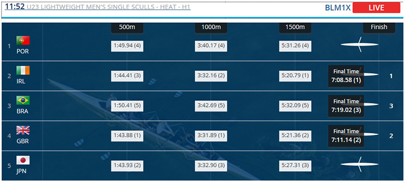 Uma arrancada nos 500 metros finais da primeira eliminatória do Single Skiff Peso-Leve, esta quarta-feira, levou o brasileiro Uncas Tales direto às quartas de final do Campeonato Mundial Sub-23, em Varese, na Itália. Após cruzar a marca dos 1.500 metros em quinto, o atleta do Botafogo ultrapassou o português Carlos Cruz e o japonês Takatomo Furumai para terminar em terceiro, em 7m19s20, atrás do irlandês Paul O´Donovan (7m08s58) e do britânico Samuel Mottran (7m11s14).
