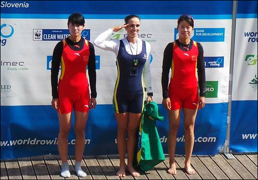 Fabiana Beltrame gosta de vencer em Bled. No lago da conquista do título Mundial em 2011, ela ganhou mais um ouro esta sexta-feira, ao dominar de ponta a ponta a prova do Single Skiff Peso-Leve Feminino, na Regata Internacional que serviu de aquecimento para a 1ª Etapa da Copa do Mundo de Remo, este fim de semana, na Eslovênia. Ela cruzou os 2.000 metros em 7m49s33, mais de 5 segundos à frente da chinesa Shuai Guo (7m54s59), segunda colocada.