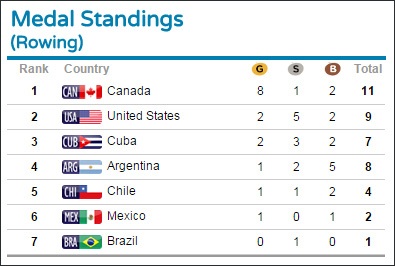 Em 17 edições dos Jogos Pan-Americanos, esta foi a terceira vez que o Brasil trouxe apenas uma medalha, quantidade que vem diminuindo desde Santo Domingo, em 2003, quando o país foi seis vezes ao pódio (quatro pratas e dois bronzes). No Rio, em 2007, foram três medalhas (uma prata e dois bronzes), e em Guadalajara, em 2011, duas de prata – uma delas de Fabiana, a primeira do remo feminino brasileiro na competição.