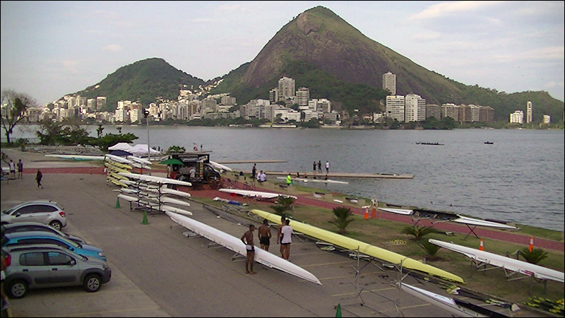 O primeiro dia do Campeonato Brasileiro de Remo Júnior e Sênior, na raia da Lagoa Rodrigo de Freitas, foi marcado pelo improviso. Com as garagens do Estádio de Remo ainda não liberadas após a cessão para os Jogos Olímpicos e Paralímpicos, os atletas recorreram à marquise da arquibancada e às poucas árvores do local em busca de sombra para descansar após as provas que abriram a competição esta quinta-feira.